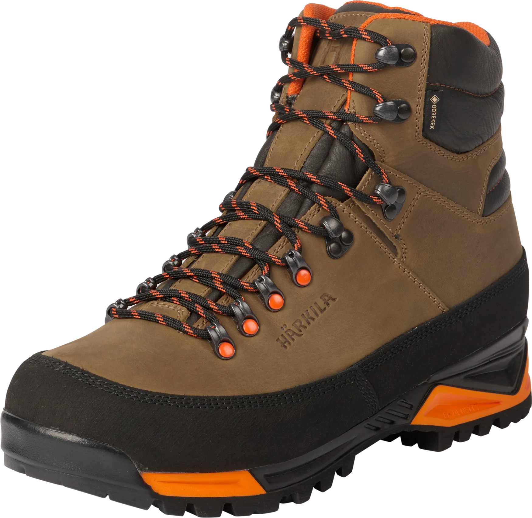 Kiváló minőségű bőr bakancs túrázáshoz és hegyi vadászathoz. GORE-TEX membránnal a vízállóságért, merev talppal a tartásért és narancssárga fűzőkkel a láthatóságért.